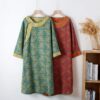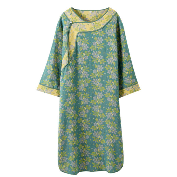 Classical Guofeng Nightdress Women’s Pure Cotton Gauze ? Spring, Autumn, and Summer Loose Chinese Style Improved Home Mid-Length Dress