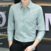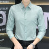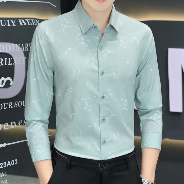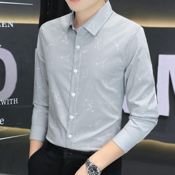 This 2024 autumn men’s long sleeve shirt features a star digital print design, anti-wrinkle fabric, and a stretch fit, perfect for a professional business look.