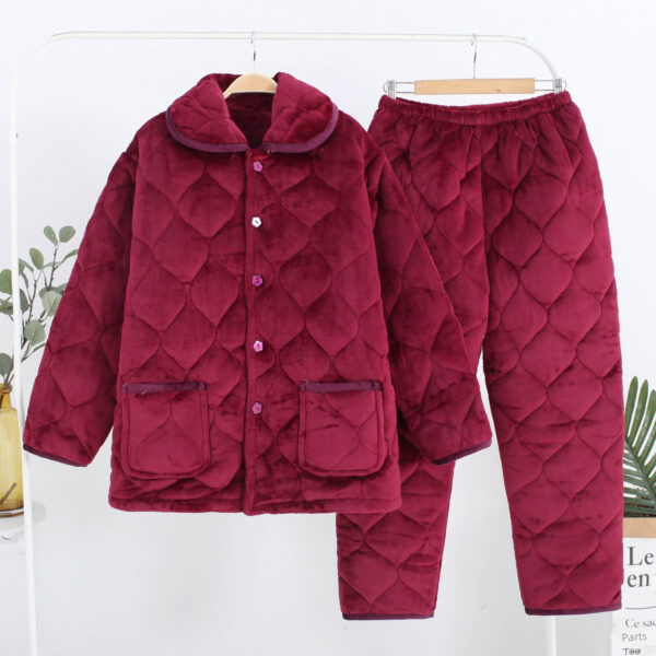 Pajamas Women’s Winter Coral Fleece Three-Layer Thickened Fleece-Lined Warm Quilted Flannel, Spring and Autumn Winter Home Wear