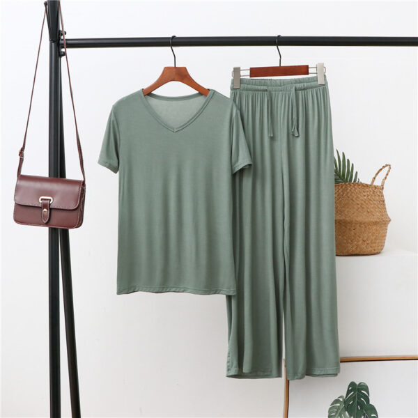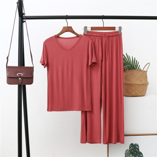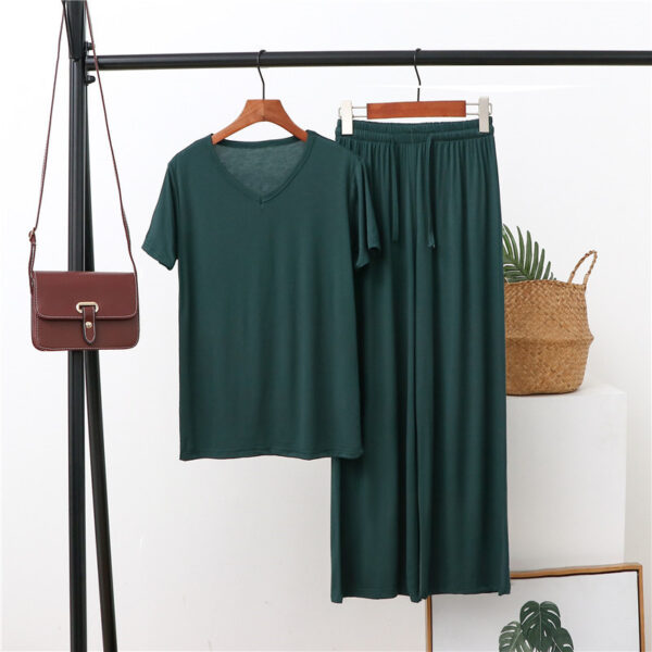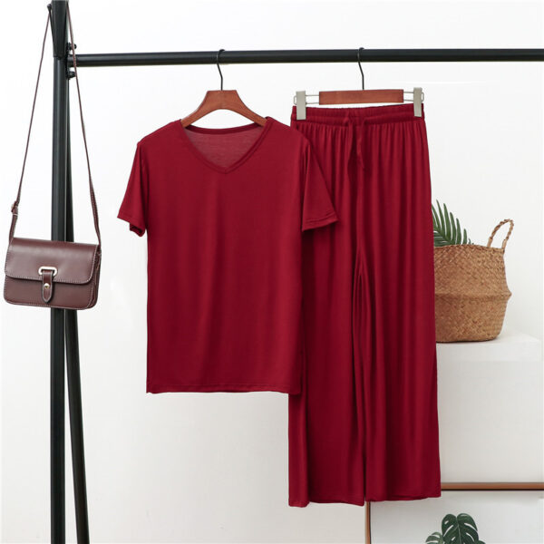 Spring and Autumn New Modal Home Clothes Set ? V-Neck Short-Sleeved T-Shirt and Wide-Leg Pants, Two-Piece Casual Pajamas