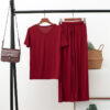 Spring and Autumn Pajama Set ? Modal Fabric, V-Neck Short-Sleeved T-Shirt and Wide-Leg Pants, Casual, Comfortable Two-Piece Set for Relaxing at Home.
